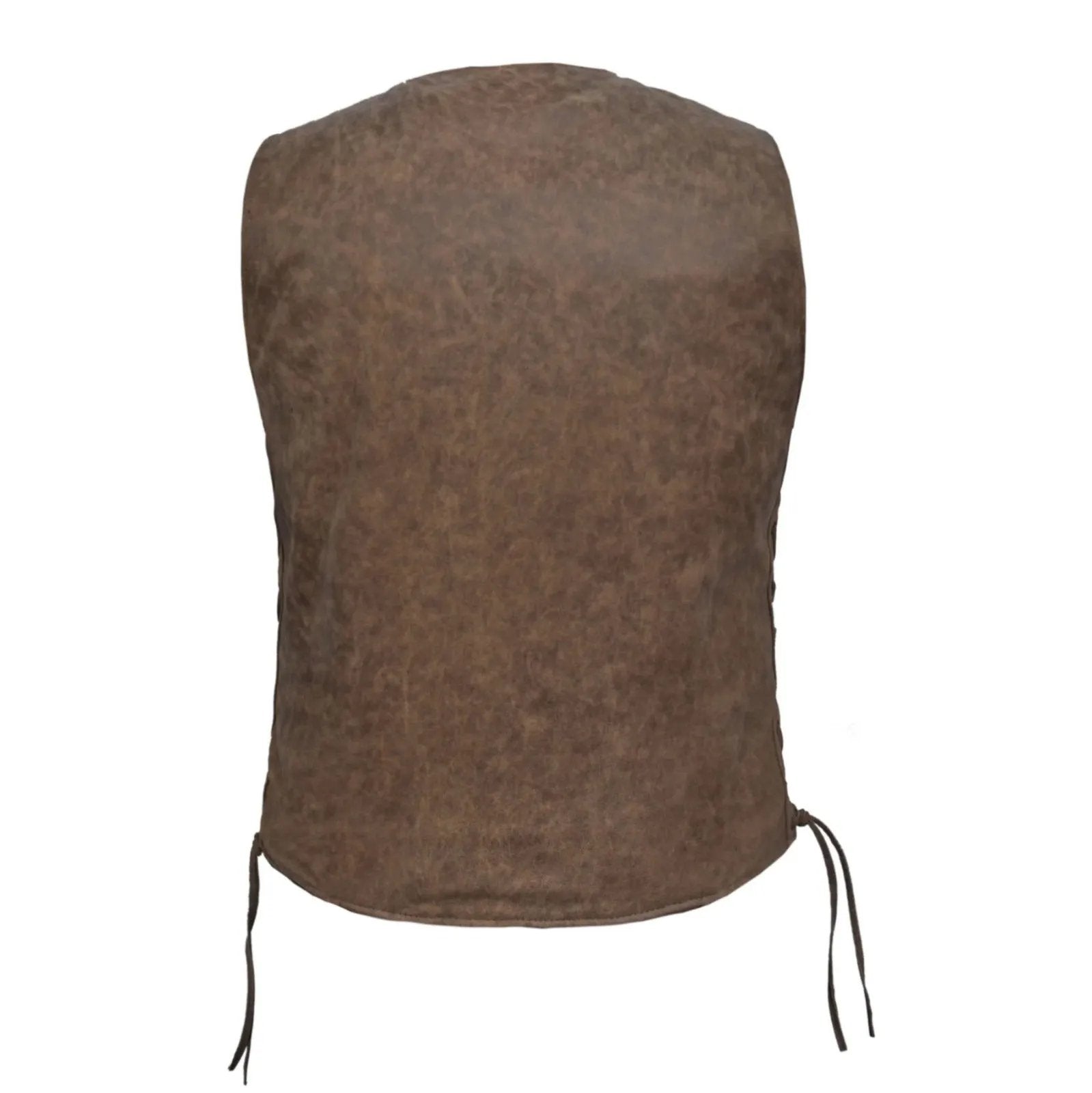 The Men's ARIZONA BROWN Leather Vest by Unik Premium blends rugged durability with vintage-inspired charm. Crafted from cowhide leather and meticulously designed in Pakistan, this vest features a distinctive distressed brown color that exudes character and sophistication. Ideal for motorcycle enthusiasts and those who appreciate classic fashion, it offers practicality with its array of pockets, including concealed carry options, ensuring both functionality and timeless appeal.