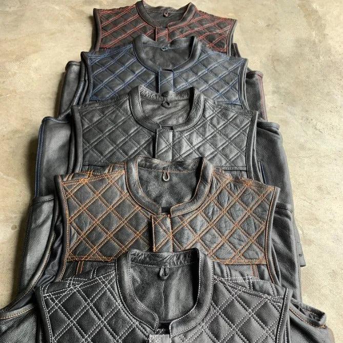 The Men's Diamond Stitch Club Vest by Unik Premium combines sophisticated design with practical features. Made from cowhide leather with a diamond stitch pattern, it includes four exterior pockets, two inside concealed carry pockets, a zip snap main closure, antique brass hardware, and a one-panel back, providing versatility and functionality for various settings.