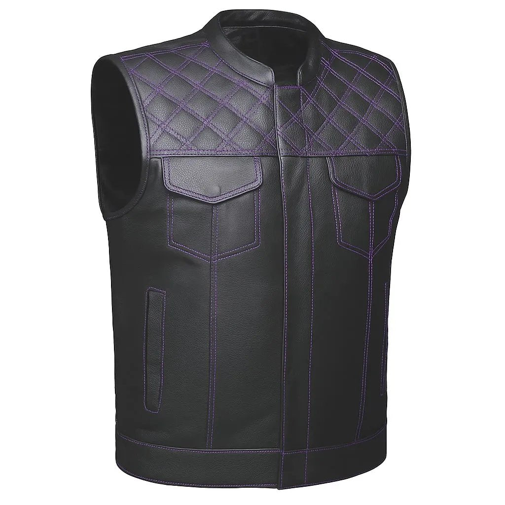 Purple Diamond – Unik Men’s Premium Leather Diamond Stitch Club Vest
