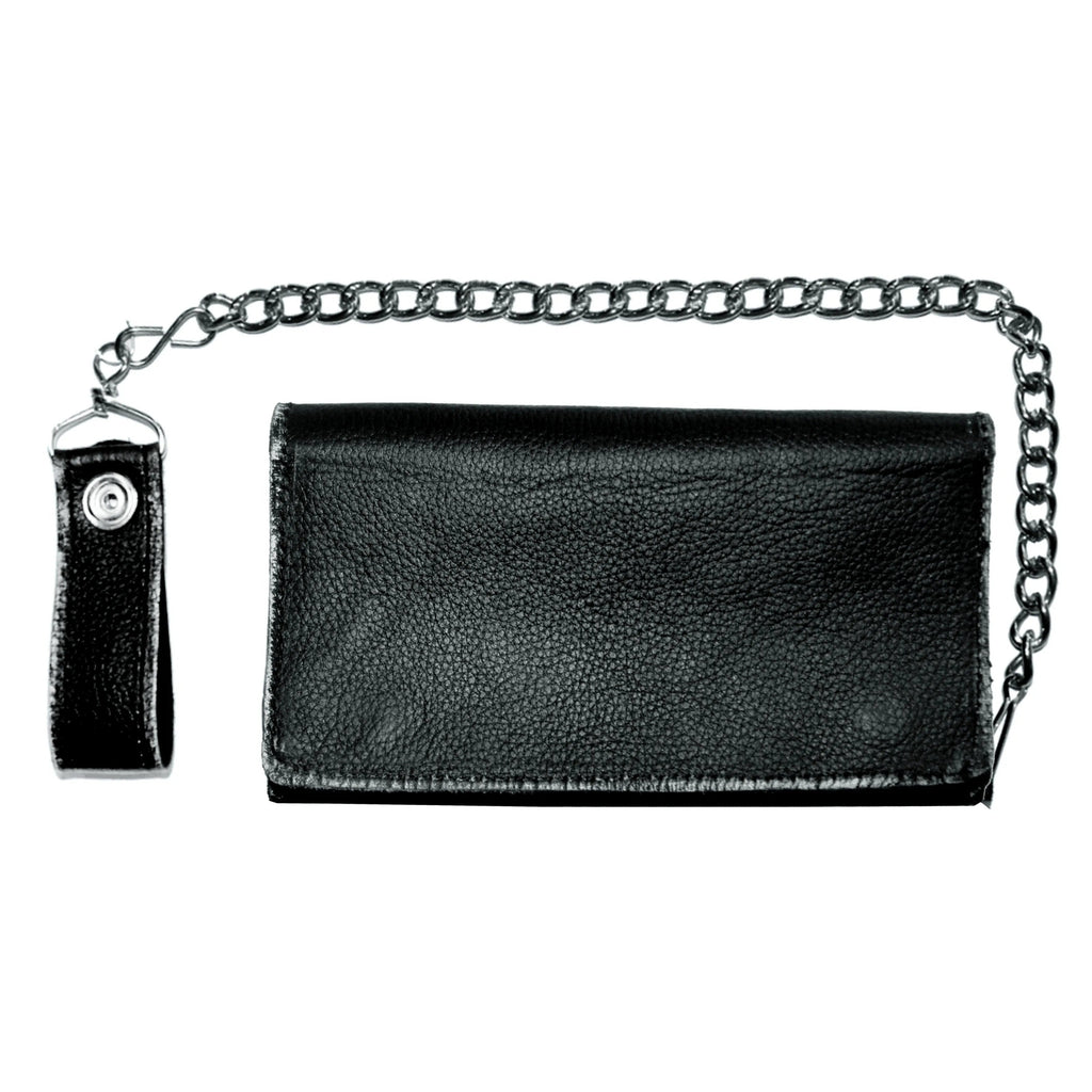 Long Black Trifold Biker Chain Wallet
