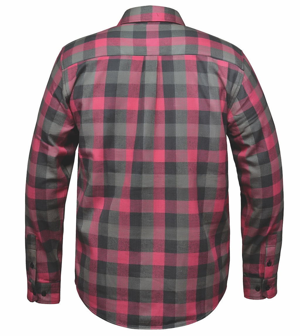 Classic flannel comfort built for the road. This men's shirt blends soft pink and gray tones in a durable weave that works whether you're cruising town or kicking back at the bar. The relaxed fit layers perfectly over a tee, and the sturdy fabric holds up to real wear. A timeless piece that fits the biker lifestyle—no fuss, just solid style.